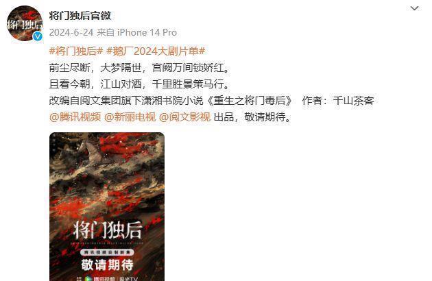这个IP就是“更生天后”千山茶客的《更生之将门毒后》,剧行将更名为《将门独后》。