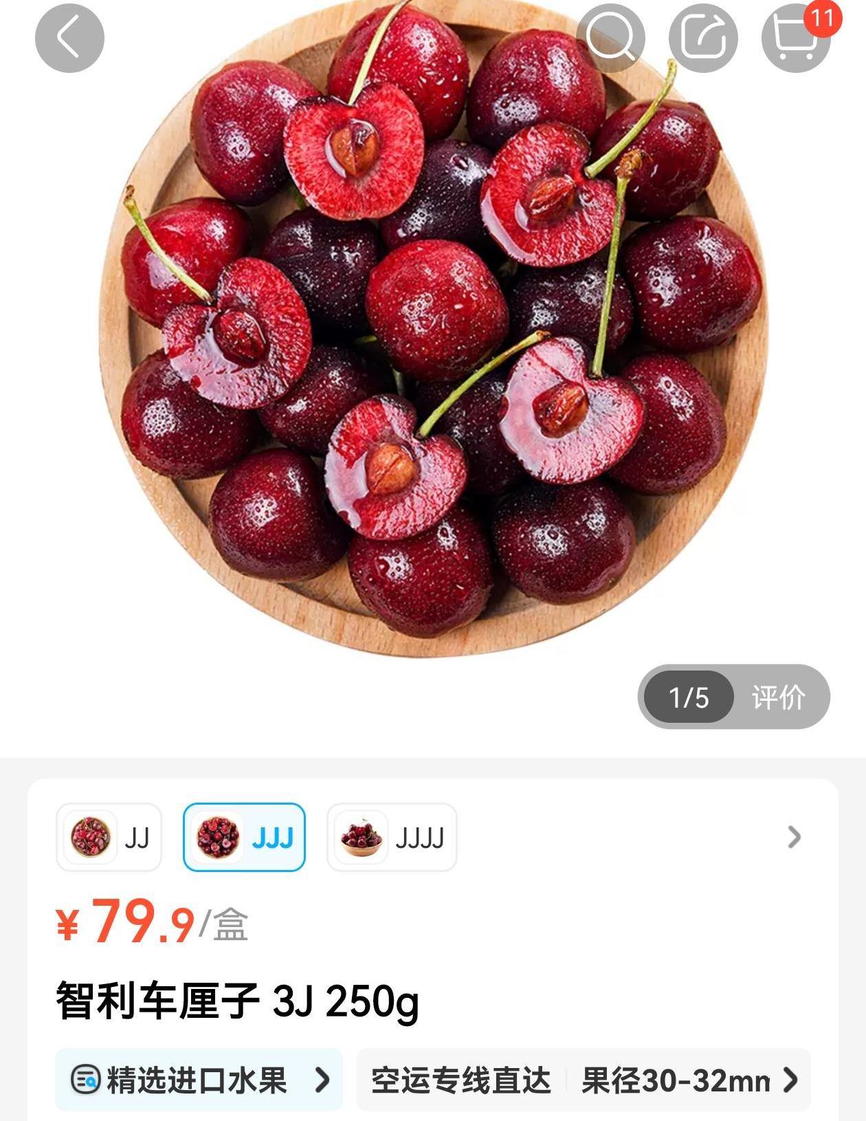 10月29日晚上,杭州市民小陆惊喜地发现,杭州某大型连锁超市在线上开售车厘子,规格从“JJ”到“JJJJ”王人有,每半斤69.9元起售,下单后现货立时送到家。“价钱有点贵,只买了半斤尝鲜,老到的脆甜感又回来了。”