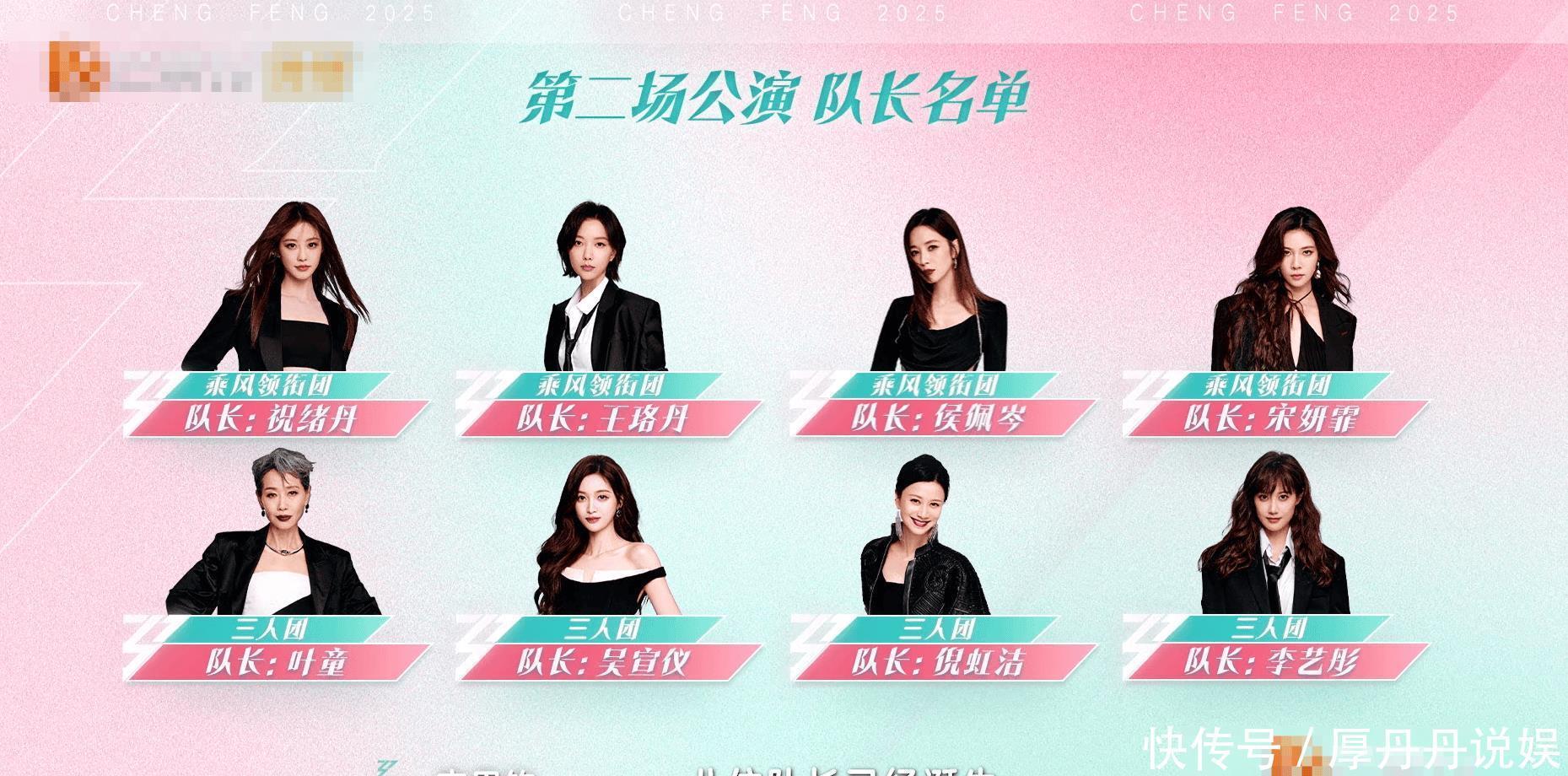 叶童、吴宣仪、王珞丹、李艺彤等姐姐被选为二公的8位队长,她们要和其余22位嘉宾进行双向接纳,队长和队员在接纳秩序结束共鸣,材干构成新的三东说念主团或者四东说念主团。
