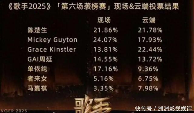 6月20日,《歌手2025》第六期排行公布:1.陈楚生2.米奇·盖顿3.格瑞丝·金斯勒4.Gai周延5.单依纯6.者来女7.马嘉祺。陈楚生终于拿到第一,本场排行临了的马嘉祺淘汰。网友纷纷暗示:陈楚生初秩序别称,这场排行终于平常了。