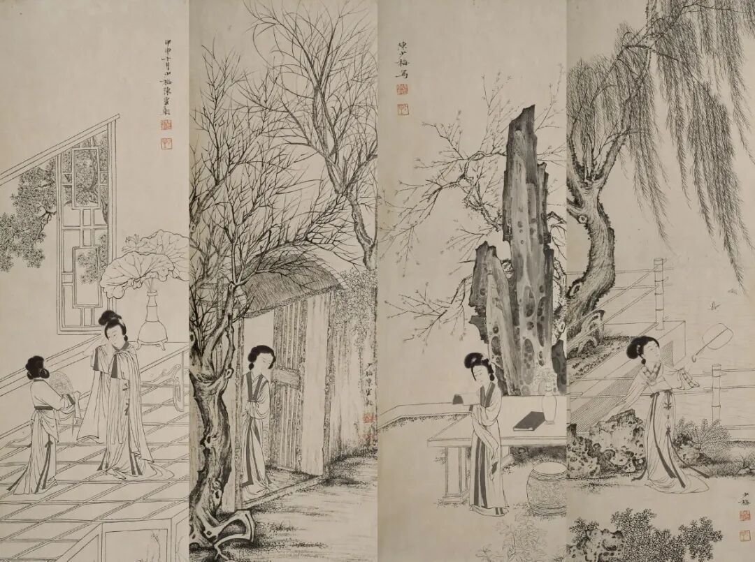 陈少梅的《东谈主物四条屏》,每一幅王人是一幅画,亦然一首诗,让东谈主在抚玩的同期,也能感受到那份诗意与雅韵。
