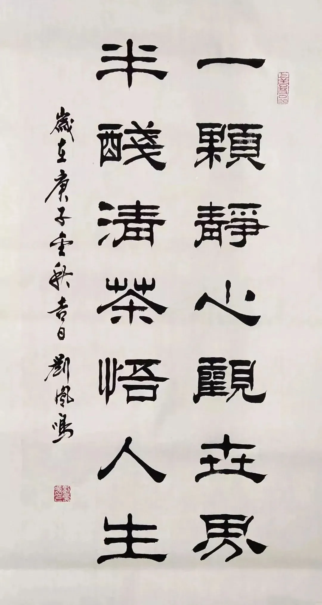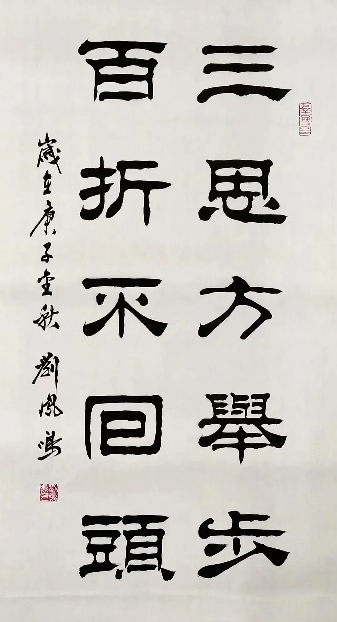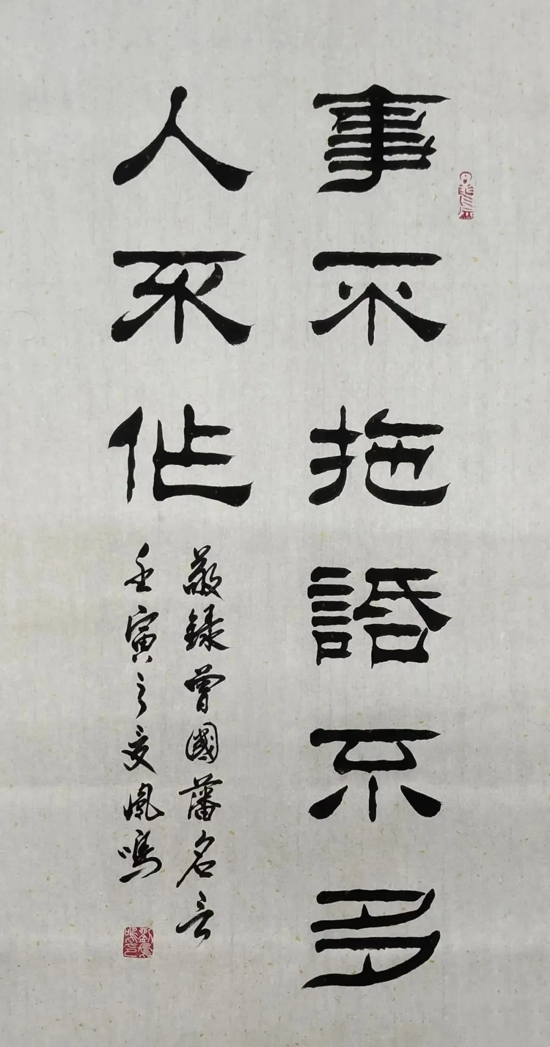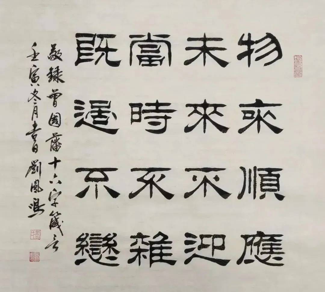 刘凤鸣的隶书,乍一看像老古董,细品却藏着“潮”基因。他笔下的逆入平出,不是痴呆地照搬汉碑,而是像合手橡皮泥似的——该动听时像汤圆,该尖锐时似刀削,粗细一变,线条立马活过来。比如写“福”字,横画拉得像扁担,空闲又带劲,竖画却细得像根葱,刚柔拿合手得死死的。