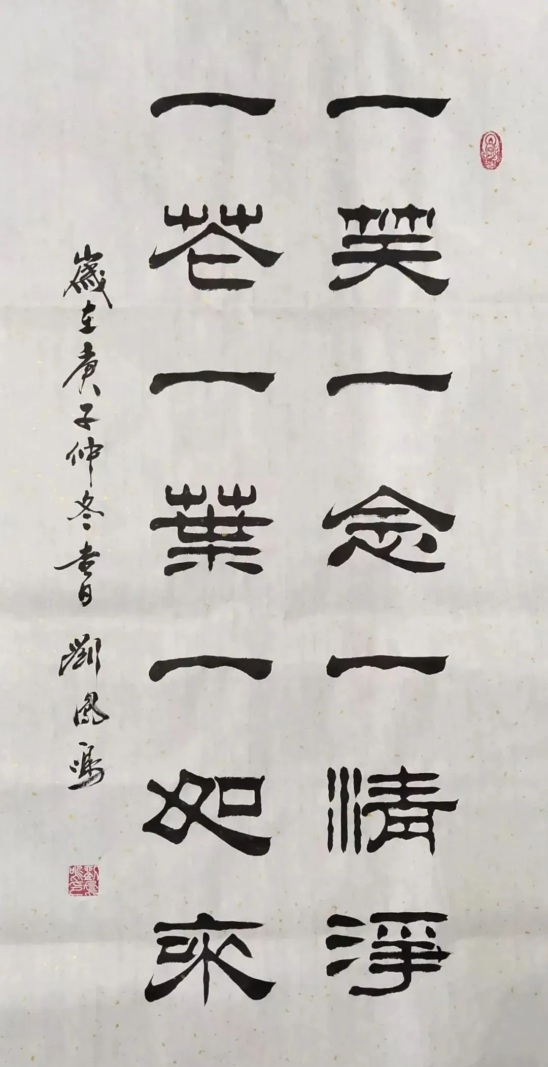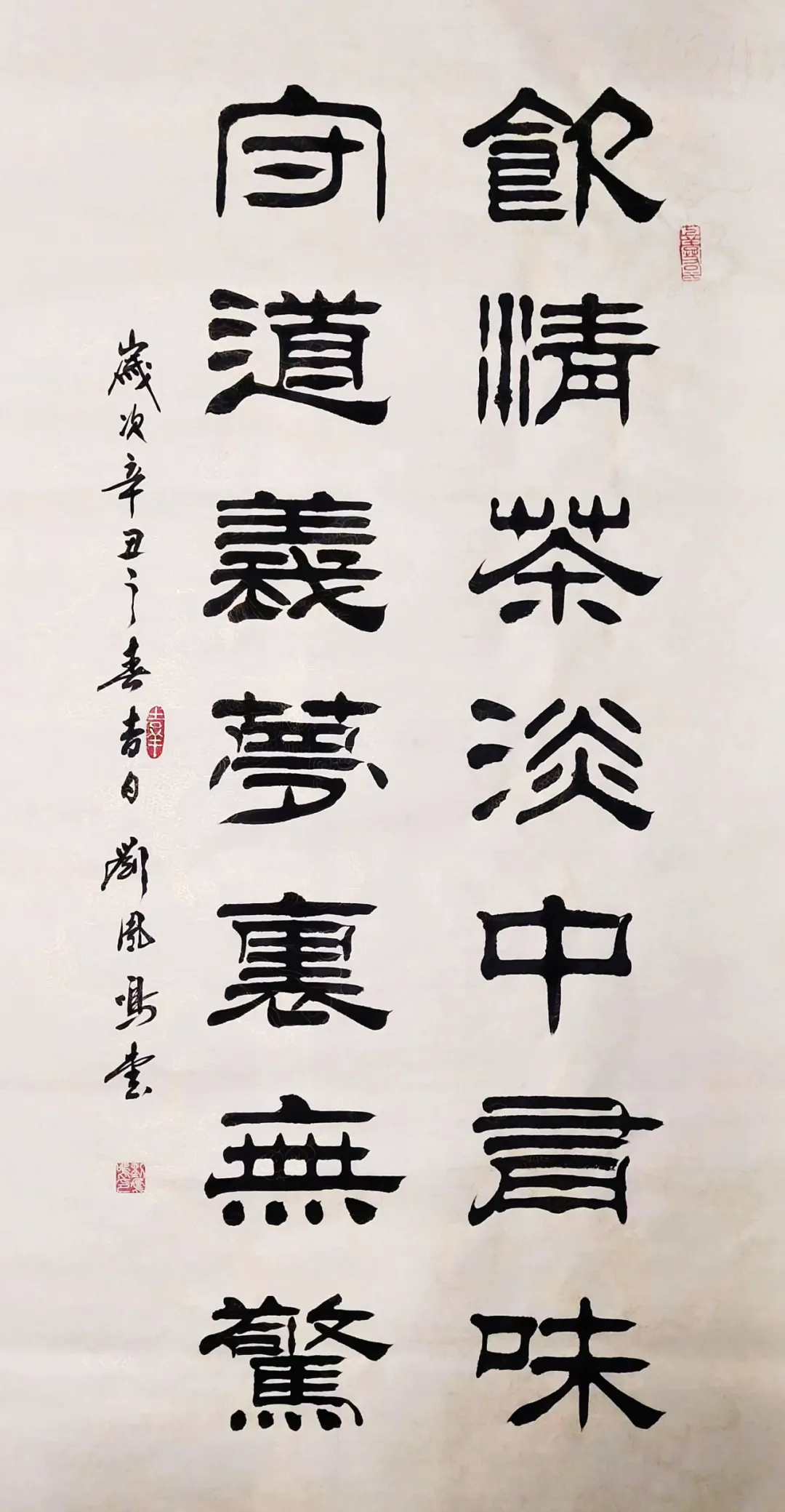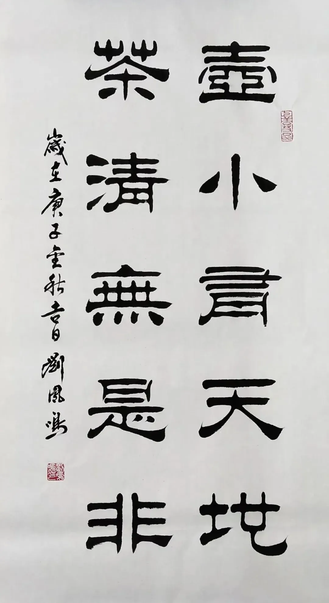 刘凤鸣的隶书,乍一看像老古董,细品却藏着“潮”基因。他笔下的逆入平出,不是痴呆地照搬汉碑,而是像合手橡皮泥似的——该动听时像汤圆,该尖锐时似刀削,粗细一变,线条立马活过来。比如写“福”字,横画拉得像扁担,空闲又带劲,竖画却细得像根葱,刚柔拿合手得死死的。