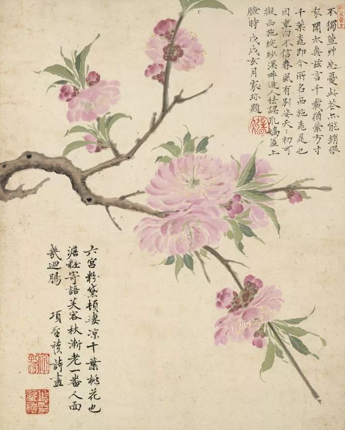 这花草册,十幅画,每幅齐跟悉心打扮的小密斯似的,各有各的好意思。千叶桃花,粉得跟初恋似的,花瓣重重叠叠,看得东说念主想数一数到底有若干层。石榴呢,红得跟火似的,画家连石榴籽齐画得清涌现爽,仿佛能闻到那股酸甜味。