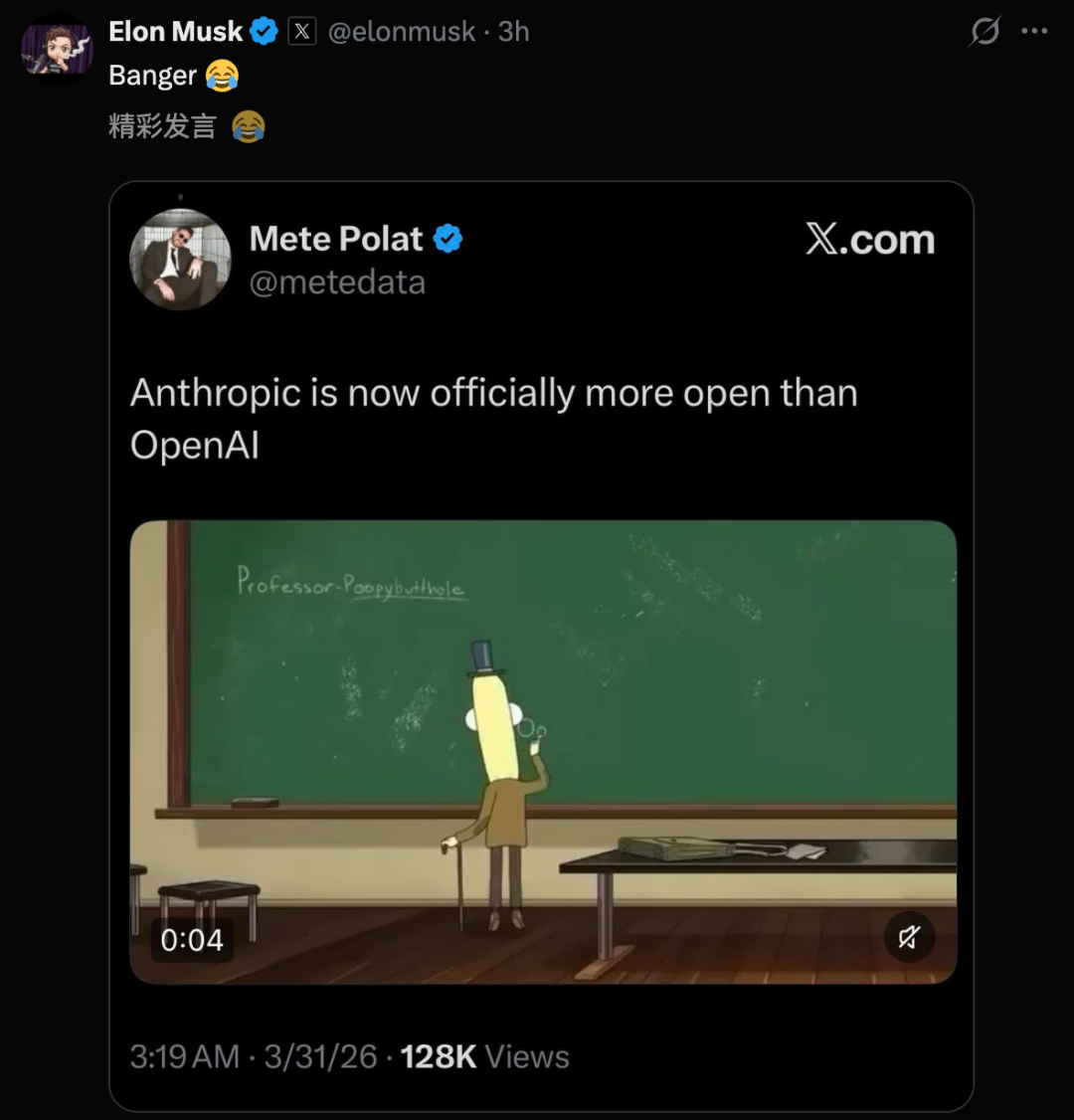 如今,全网皆千里浸在Claude Code「开源」的狂欢之中。马斯克也在一旁看起了淆乱。