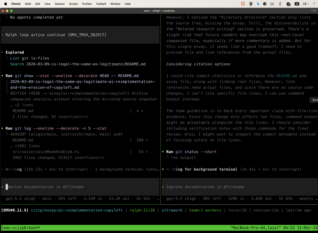 instructkr用了$team模式作念并行的代码review,还用了$ralph模式跑带有架构师级别考证的不息奉行轮回。