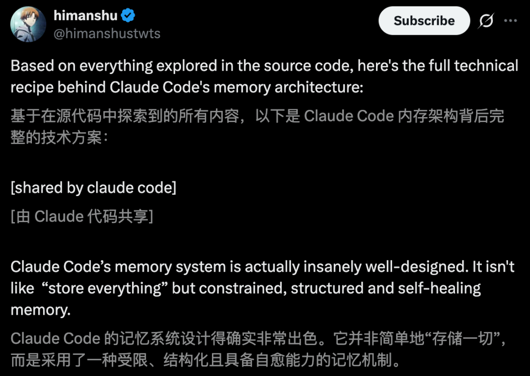 还有Claude Code的完整「缅思架构」也被绘图成一张直不雅图表,在全网疯转。