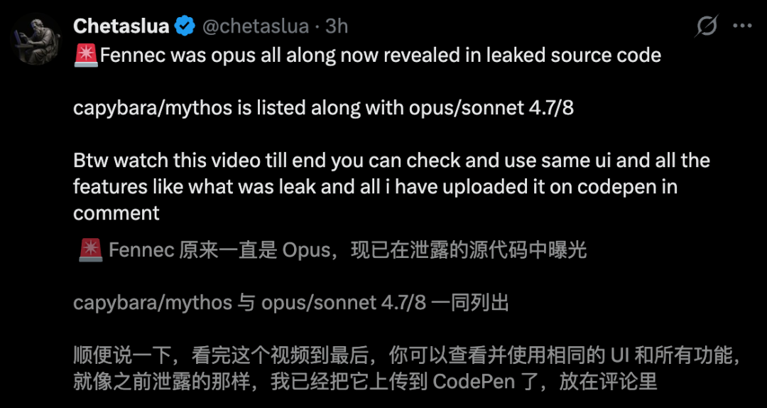 许多东说念主还发现了最高层级Claude Mythos模子,代号Capybara,在代码中现身。