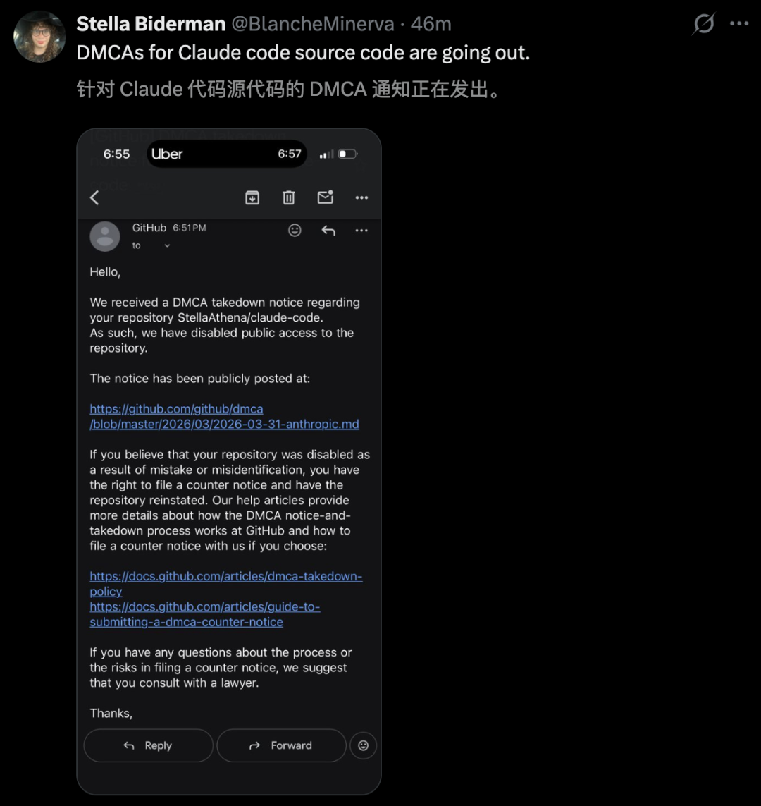 就在这个节骨眼上,Anthropic最先了:通过DMCA版权投诉,径直封杀了总共共享源码的聚会。