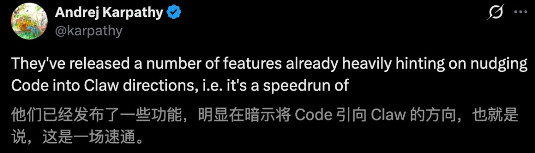 对此,Karpathy点评说念,这些功能较着是将Claude Code「龙虾化」。