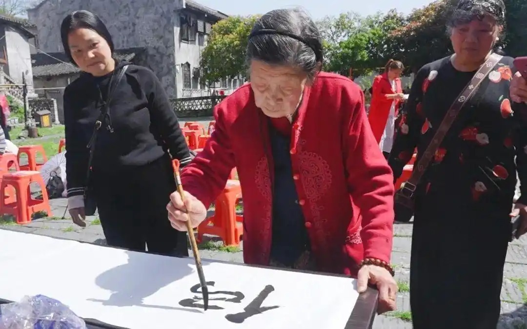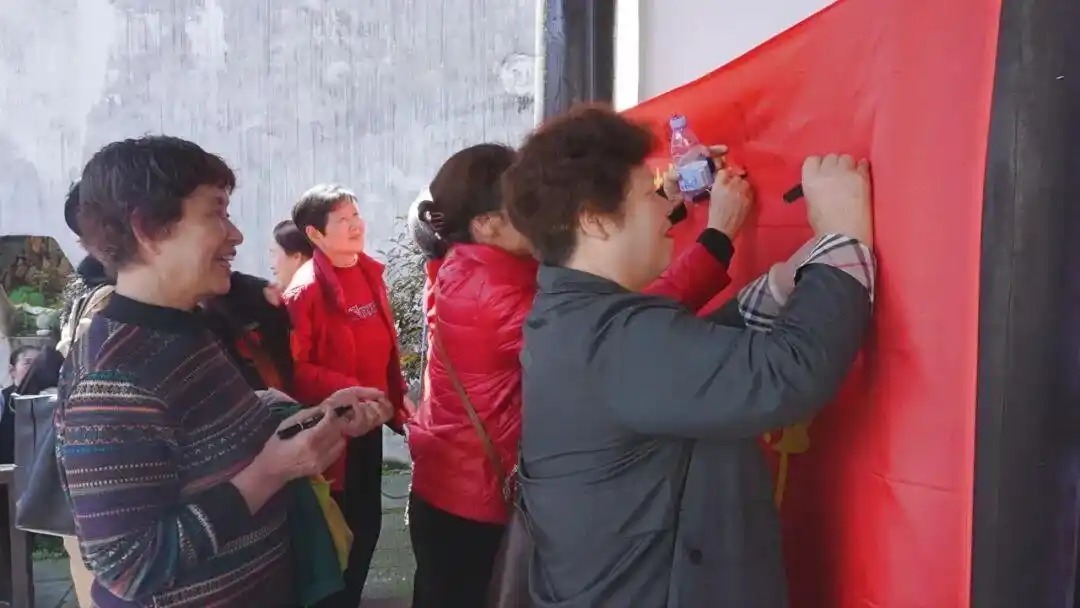活动本日,街坊们络续报到,并拍摄个东说念主留影与集体合照。随后,环球都聚高坡街文化广场,在节略而激烈的开场后,年过九旬的禹玉莲老东说念主现场挥毫,获取阵阵掌声。与会者在红旗上依次签名,并一一自我先容,现场脑怒温馨融洽。