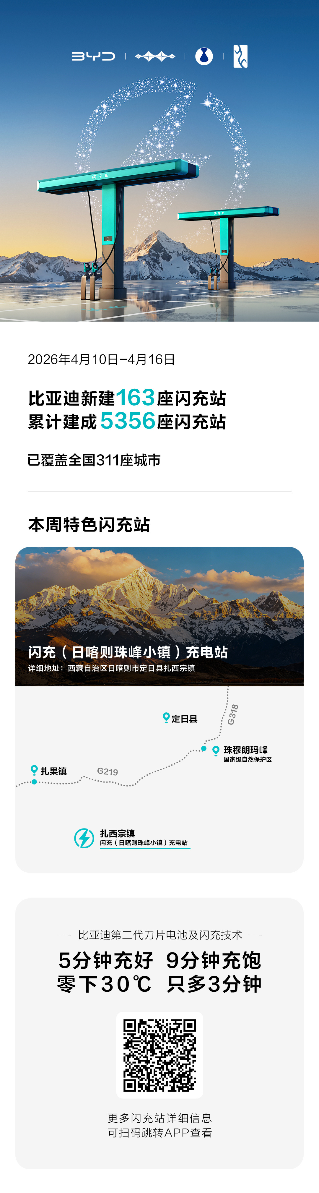 IT之家 4 月 18 日音书,比亚迪官方书记,比亚迪珠峰小镇闪充站 —— 众人海拔最高的闪充站崇拜进入运营。
