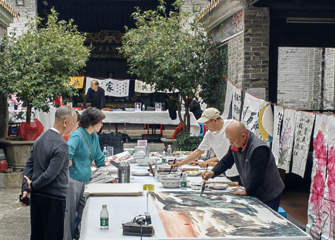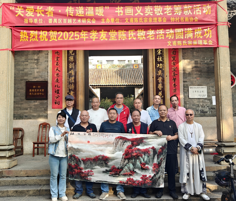为领路中华英才尊老敬老的传统良习,鼓动艺术回馈社会、反哺下层,近日,钟村一村文莆陈公祠宗亲汇积累番禺区百越艺术询查会、钟村字画协会,共同规划举办了主题为“关爱长辈·传递存眷”的字画慈善义卖敬老筹款手脚。手脚特邀11位驰名字画家现场创作,以翰墨为媒,以骨子行径探索艺术与公益勾搭的新形式,积极助力乡村文化振兴,营造崇德向善的社区氛围。